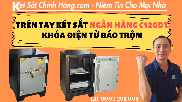 Trên tay két sắt ngân hàng C120DT khóa điện tử chống cháy có báo trộm. là sản phẩm két sắt chống cháy có báo trộm hiện đại và an toàn nhất. két có thể mang lại sự an toàn cho bạn, đảm bảo cho bạn về khả năng chống cháy chống phá và điều tuyệt vời hơn là két sắt rất dễ sử dụng. két sắt dùng cho gia đình, công ty, các căn hộ chung cư. Dưới đây là mô tả chi tiết về tính năng của sản phẩm.